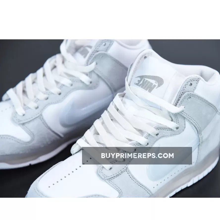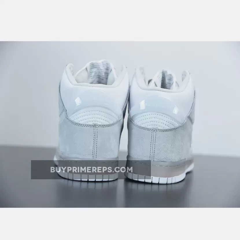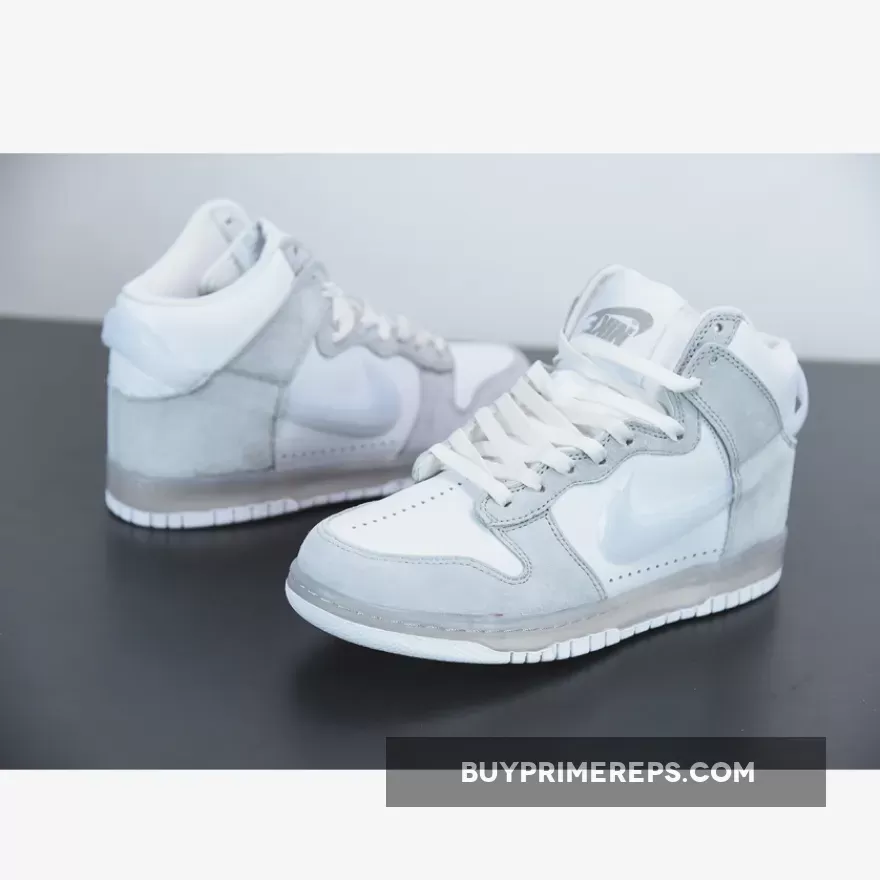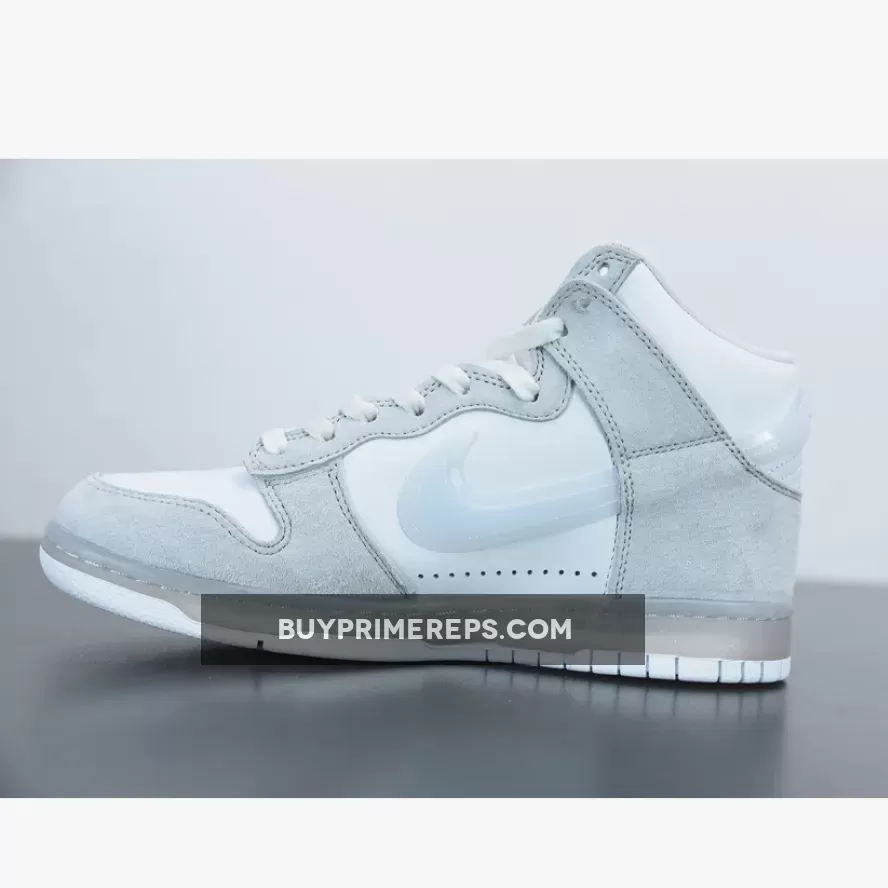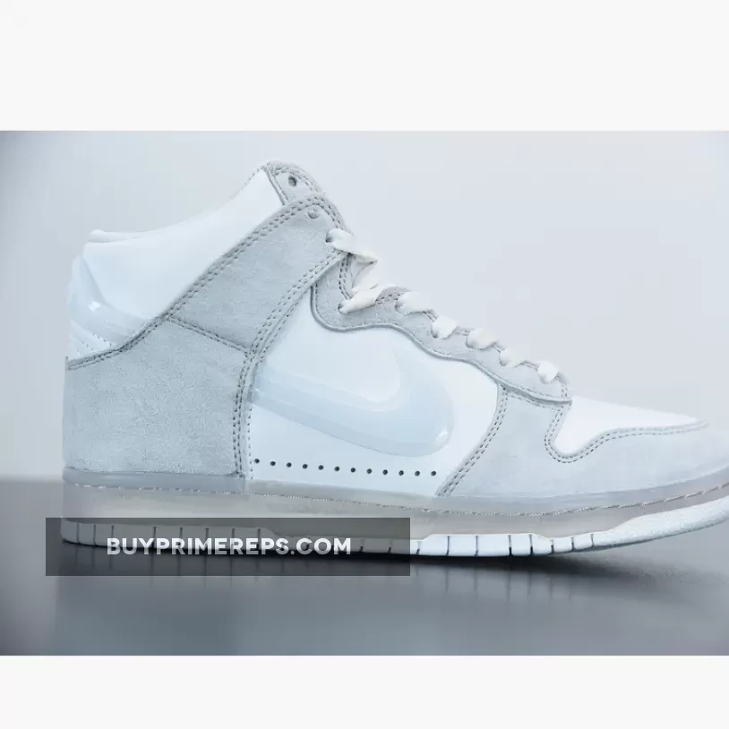 One of the standout features of the Slam Jam x Nike Dunk High is the color blocking. The clear-pure platinum color scheme is minimalist and modern, with light grey details adding subtle contrast. The gummy Swooshes add a contemporary touch to the design, making this collaboration a perfect blend of classic and contemporary aesthetics.