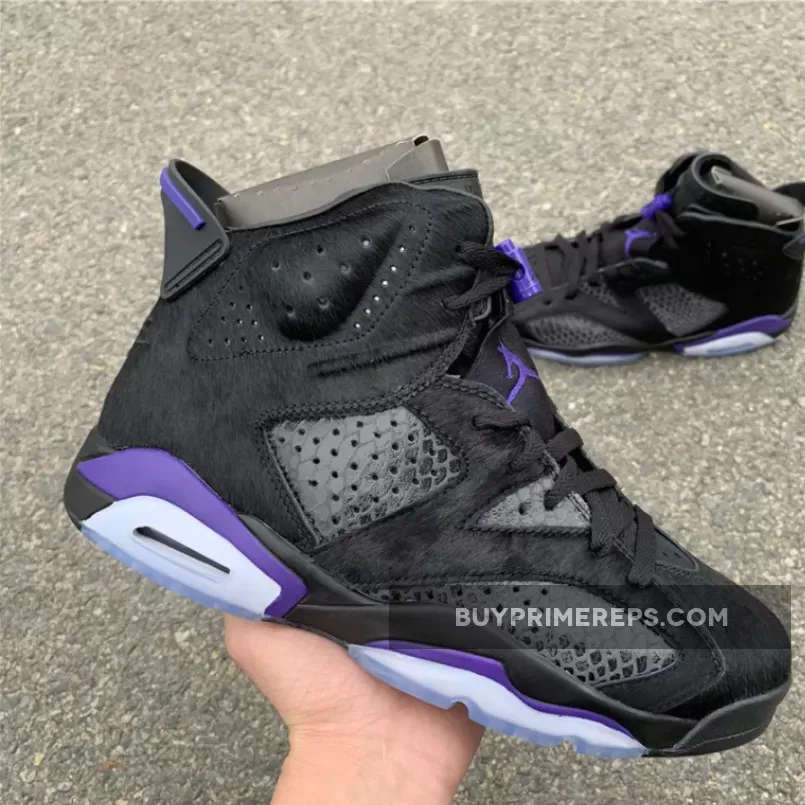 Premium vibes! Snake & pony hair combo on the Air Jordan 6 is sleek & stylish. Love the subtle pops of purple & icy outsole. #MustHave #AirJordan #SocialStatus