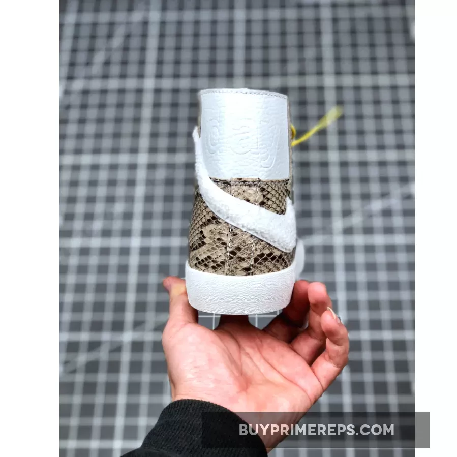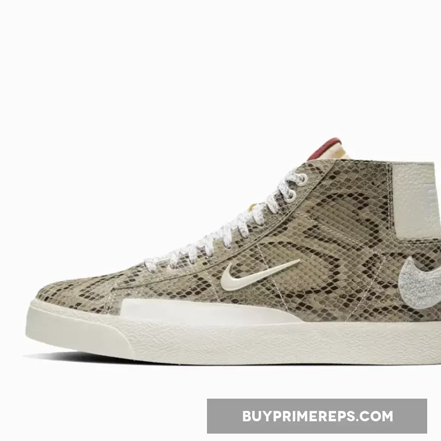 One notable departure from the traditional Blazer Mid design is the absence of the usual Swoosh branding. Instead, there is a small Swoosh logo on the lateral side and a larger chenille Swoosh that wraps around the medial side panel and heel. This unique branding gives the shoe a distinctive and eye-catching look.