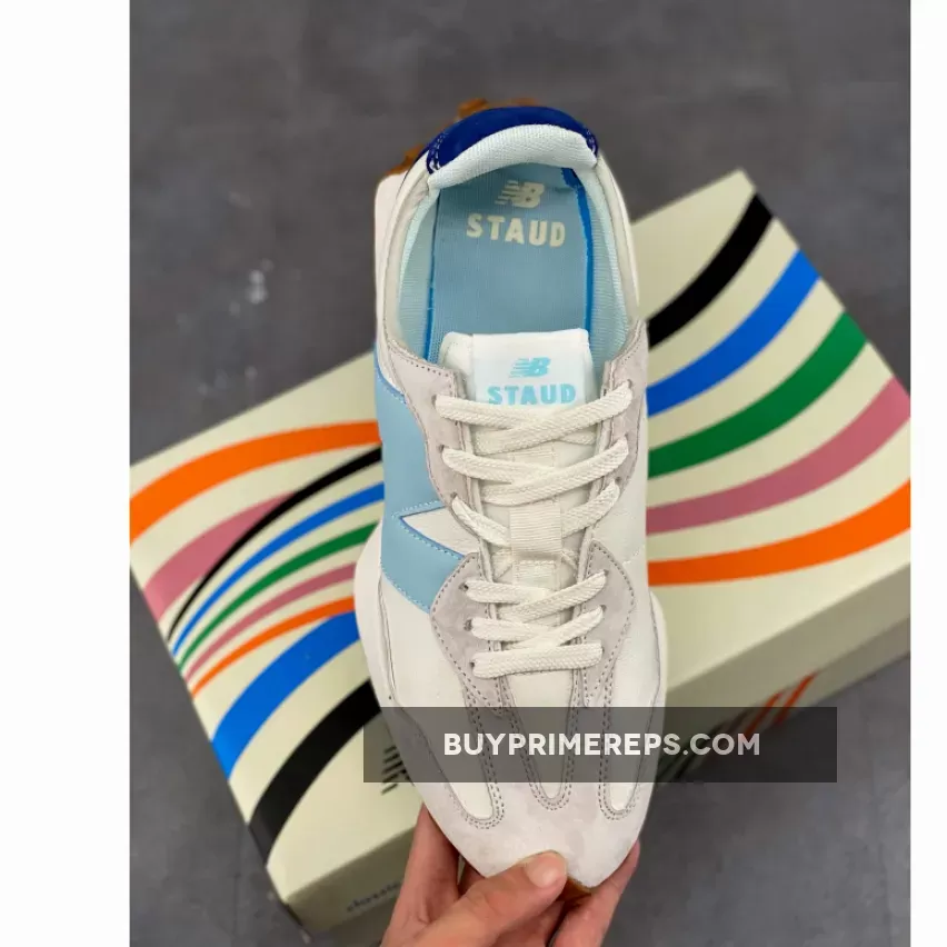 The highly anticipated collaboration between STAUD and New Balance has finally arrived! 👟 The limited-edition STAUD x New Balance 327 White Grey is a dream come true for sneakerheads who love a classic silhouette with a stylish twist. 🎨
