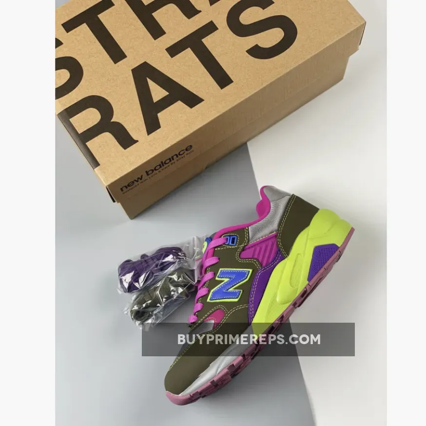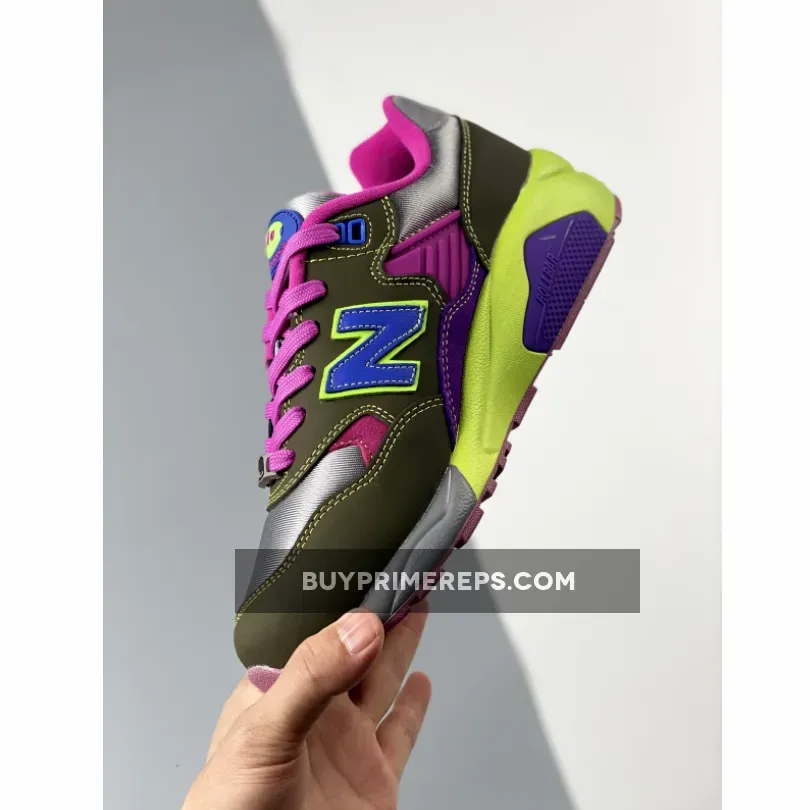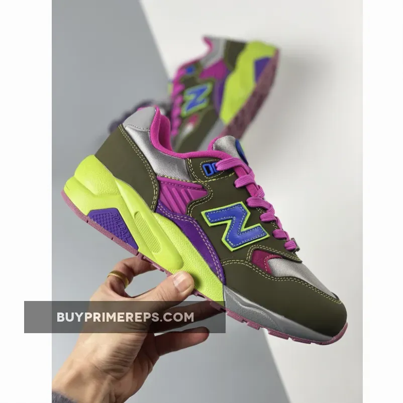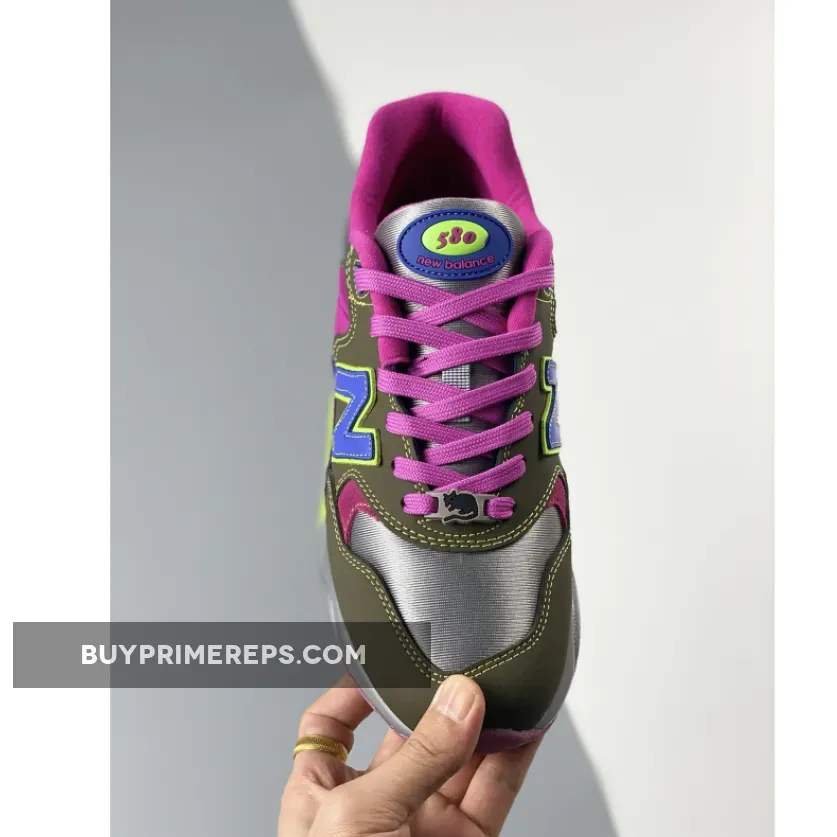 This unique collaboration brings together the iconic New Balance 580 silhouette and the vibrant, graphic-heavy aesthetic of Stray Rats. The result is a shoe that’s equal parts retro charm and modern flair. The teal green and purple color palette is a stunning blend of bold and muted hues, with neon accents adding an extra layer of visual interest.
