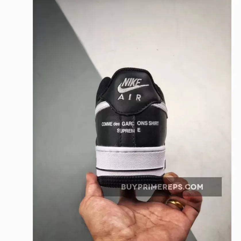 The Supreme x Comme des Garçons SHIRT x Air Force 1 Low perfectly embodies the minimalist and avant-garde aesthetic that both brands are known for. The clean black and white colorway allows the unique design elements to take center stage, making these sneakers a statement piece that will surely turn heads.