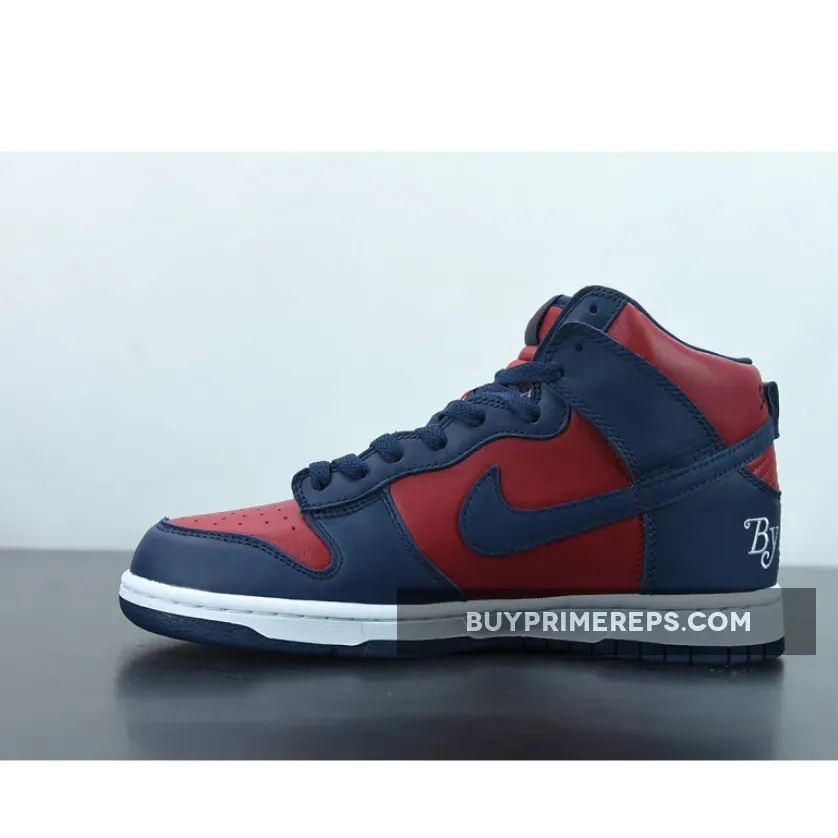 Introducing the Supreme x Nike SB Dunk High Navy Red, a collaboration that brings together the iconic skate label and the renowned sportswear brand for a striking and bold sneaker release. With more than three decades of experience in the skating arena, Supreme continues to embody the classic New York skate aesthetics, and this collaboration is no exception.