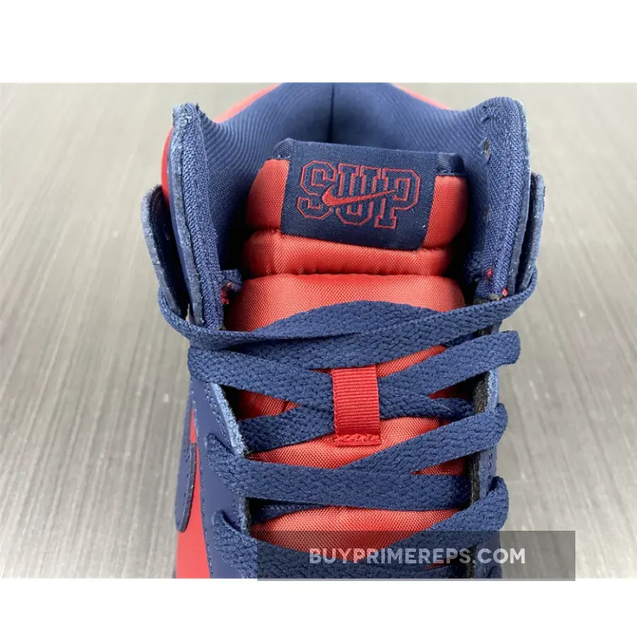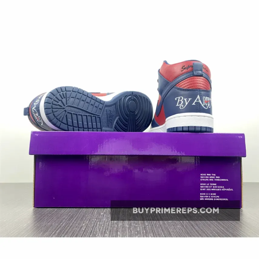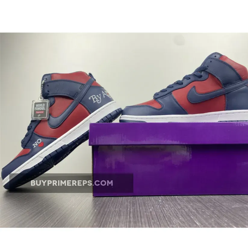 Overall, the Supreme x Nike SB Dunk High Navy Red is a must-have for both skate lovers and sneakerheads alike. Its bold colorway, intricate embroidery, and classic design elements make it a standout choice for anyone looking to make a statement with their footwear. Don’t miss out on this highly anticipated collaboration and add a touch of Supreme style to your collection.