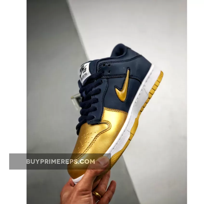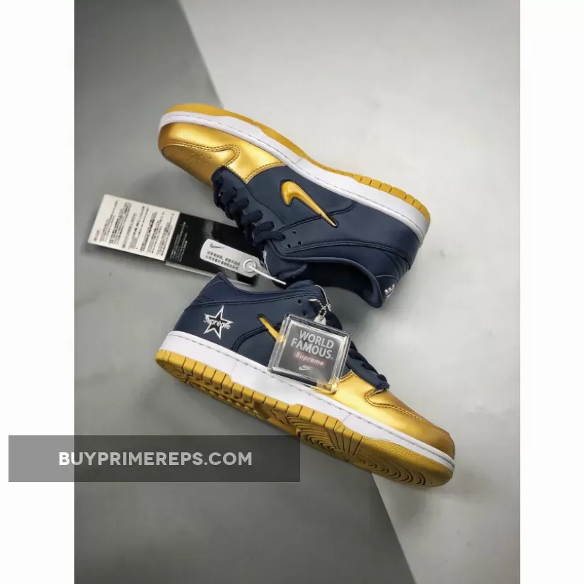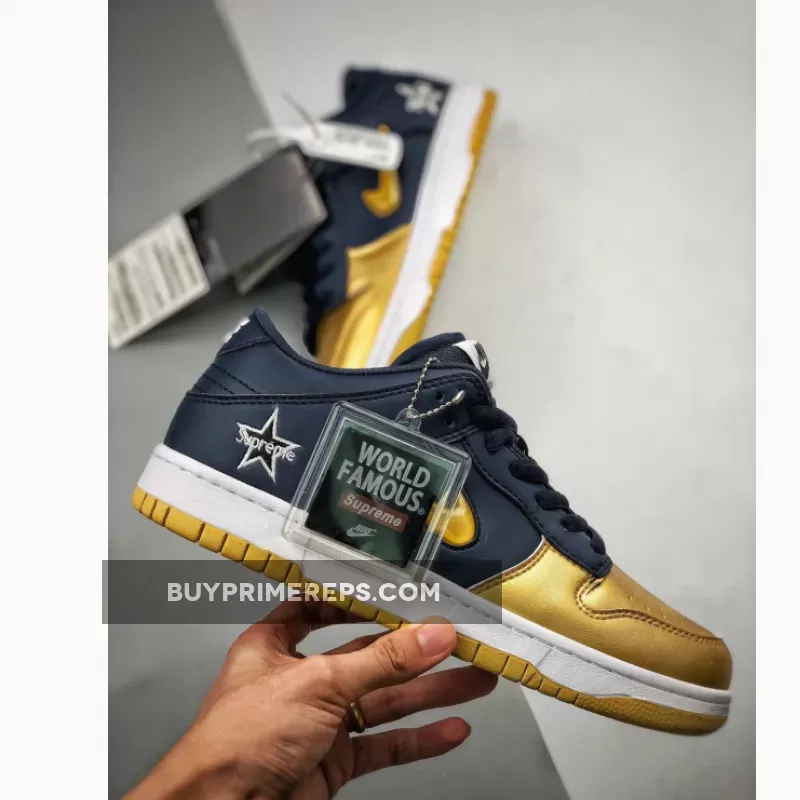 In conclusion, the Supreme x Nike SB Dunk Low Gold Navy is a must-have for sneaker enthusiasts and Supreme fans. With its sleek navy leather upper, metallic gold toe panel, and exclusive Supreme branding, this collaboration is sure to turn heads. Don’t miss your chance to own a piece of sneaker history and add this iconic release to your collection.