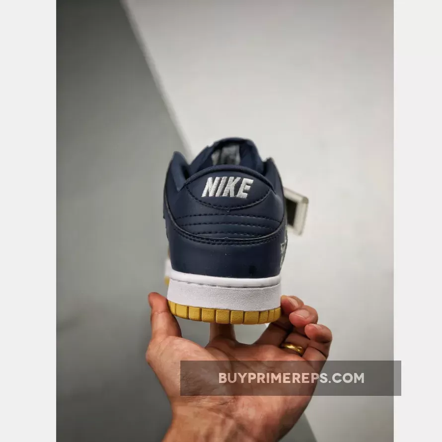 The Nike SB Dunk Low collaboration with Supreme has always been highly anticipated by sneakerheads and streetwear enthusiasts alike. And this time, they have delivered yet again with the Supreme x Nike SB Dunk Low Gold Navy. This new release features a navy leather upper that exudes a sleek and sophisticated vibe. The navy hue is contrasted by a metallic gold toe panel, adding a touch of luxury to the design.