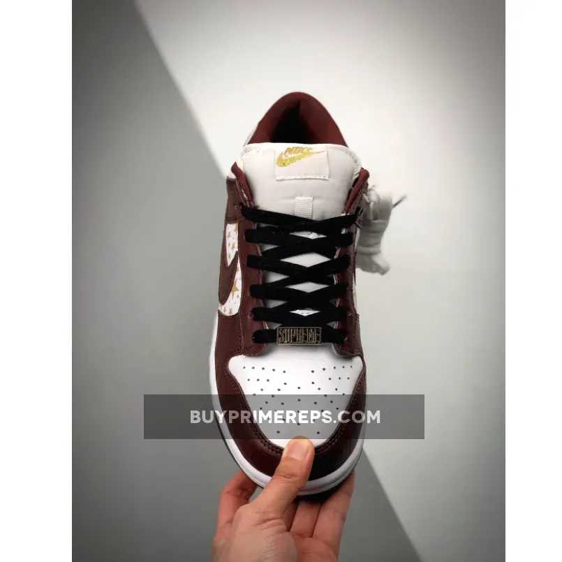 One of the most eye-catching elements of the Supreme x Nike SB Dunk Low Stars Barkroot Brown is the series of metallic gold stars that are placed on the side panels. This design element pays homage to the iconic Nike Dunk High collaboration between Nike and Supreme that was first introduced in 2003. The gold stars add a unique and stylish touch to the sneakers, making them truly stand out from the crowd.
