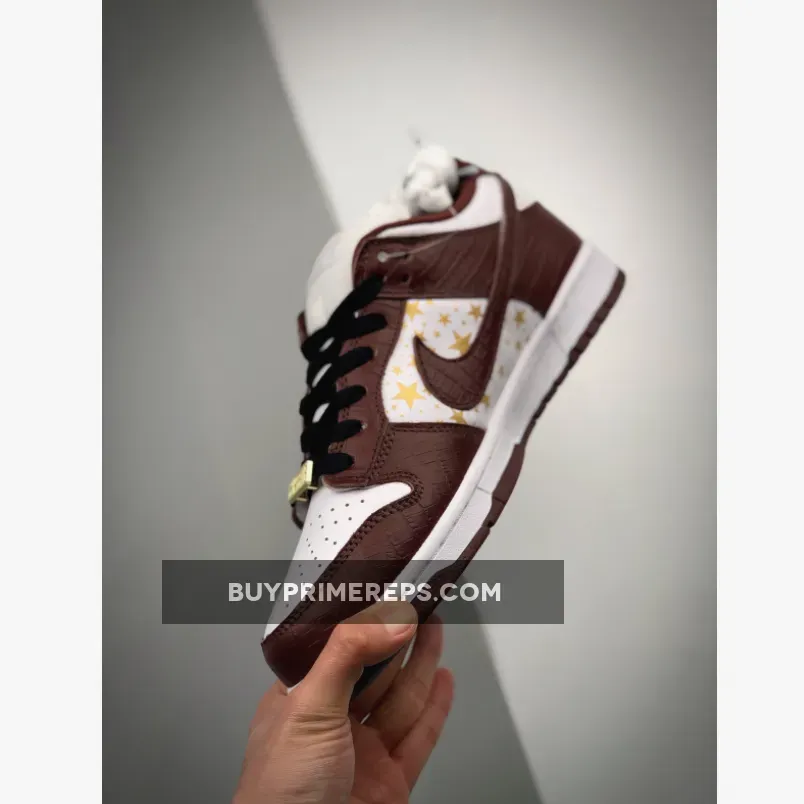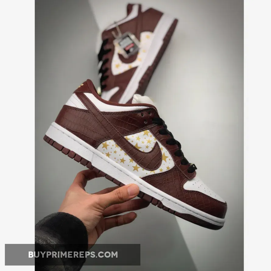 Overall, the Supreme x Nike SB Dunk Low Stars Barkroot Brown is a must-have for any sneaker enthusiast or skateboarding aficionado. With its unique design, luxurious materials, and collaborative branding, these sneakers are sure to make a statement wherever you go. Don’t miss out on your chance to own a piece of sneaker history with the Supreme x Nike SB Dunk Low Stars Barkroot Brown.