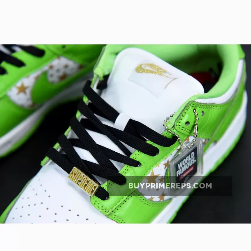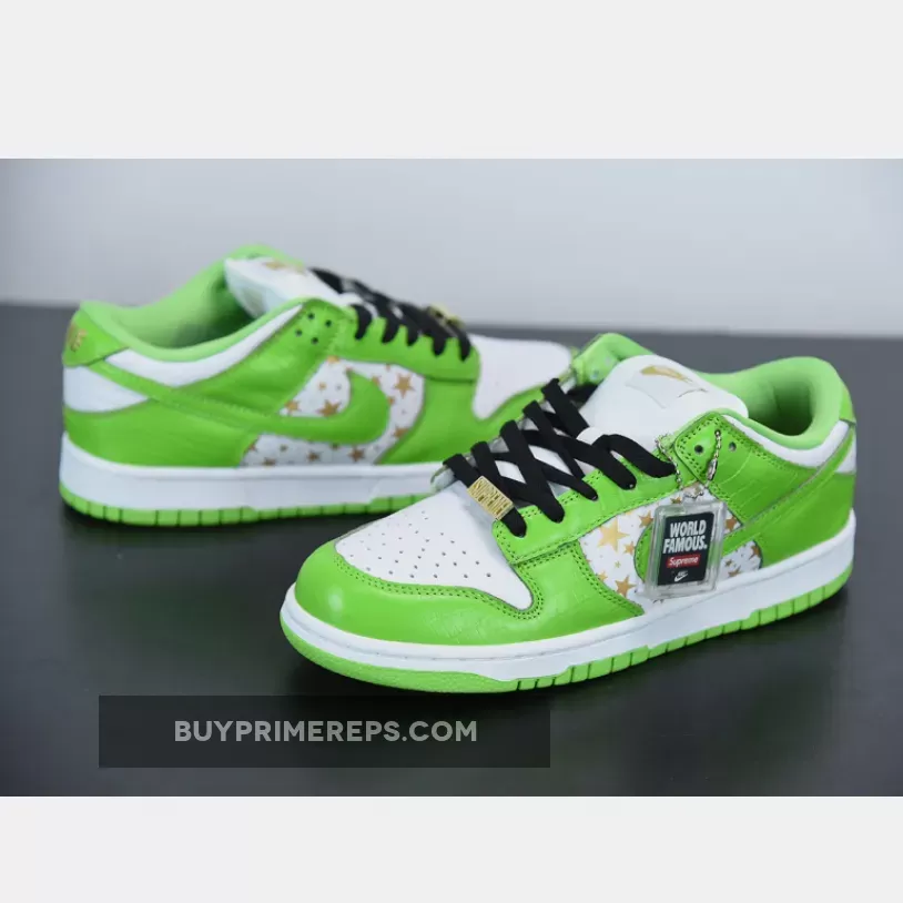Introducing the highly anticipated Supreme x Nike SB Dunk Low Stars Mean Green, a collaboration between Supreme and Nike that is set to take the sneaker world by storm. This release marks a long-awaited reunion between the two iconic brands, and fans are eagerly awaiting the drop of this unique and stylish sneaker.