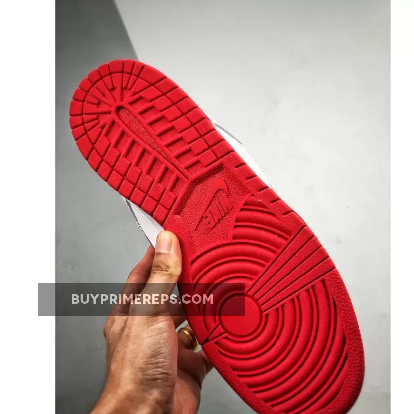 The Supreme x Nike SB Dunk Low Red White sits atop a white midsole, which provides cushioning and support. The red outsole adds a bold contrast to the shoe and enhances the overall design.