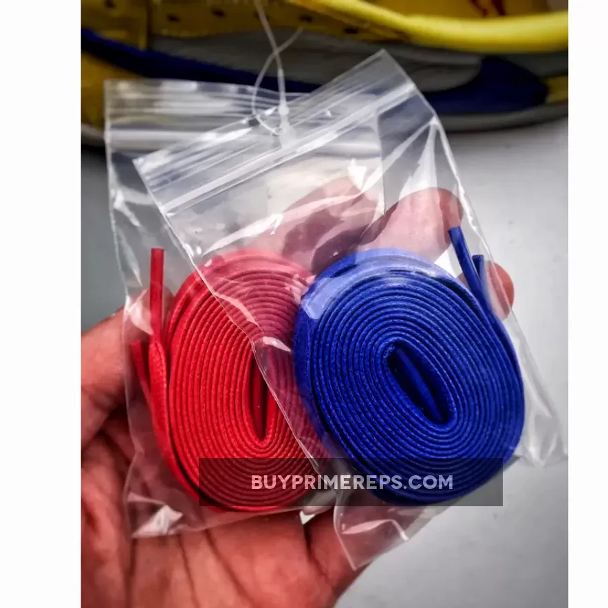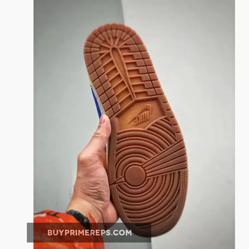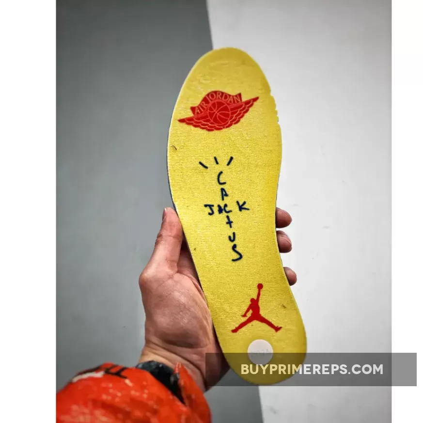 As with previous Travis Scott collaborations, branding plays a significant role in the design. The shoe features Cactus Jack branding on the lateral quarter, left heel tab, and insoles, showcasing Scott’s personal touch. Additionally, the shoe comes with three sets of laces in yellow, red, and blue, allowing for customization and personalization.