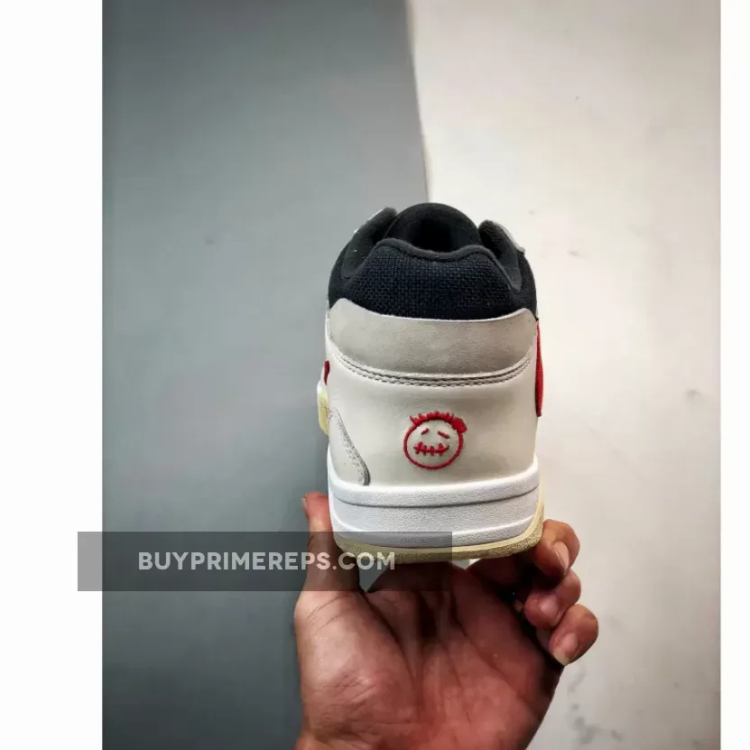 One of the most eye-catching features of this collaboration is the vibrant University Red accents found throughout the shoe. The Swooshes, the tongue’s Jumpman logo, and the embroidered Cactus Jack face logo at the heel all boast this bold University Red hue, adding a pop of color to the overall design. The textile base is complemented by leather overlays in black and white, creating a visually striking contrast that is sure to turn heads.