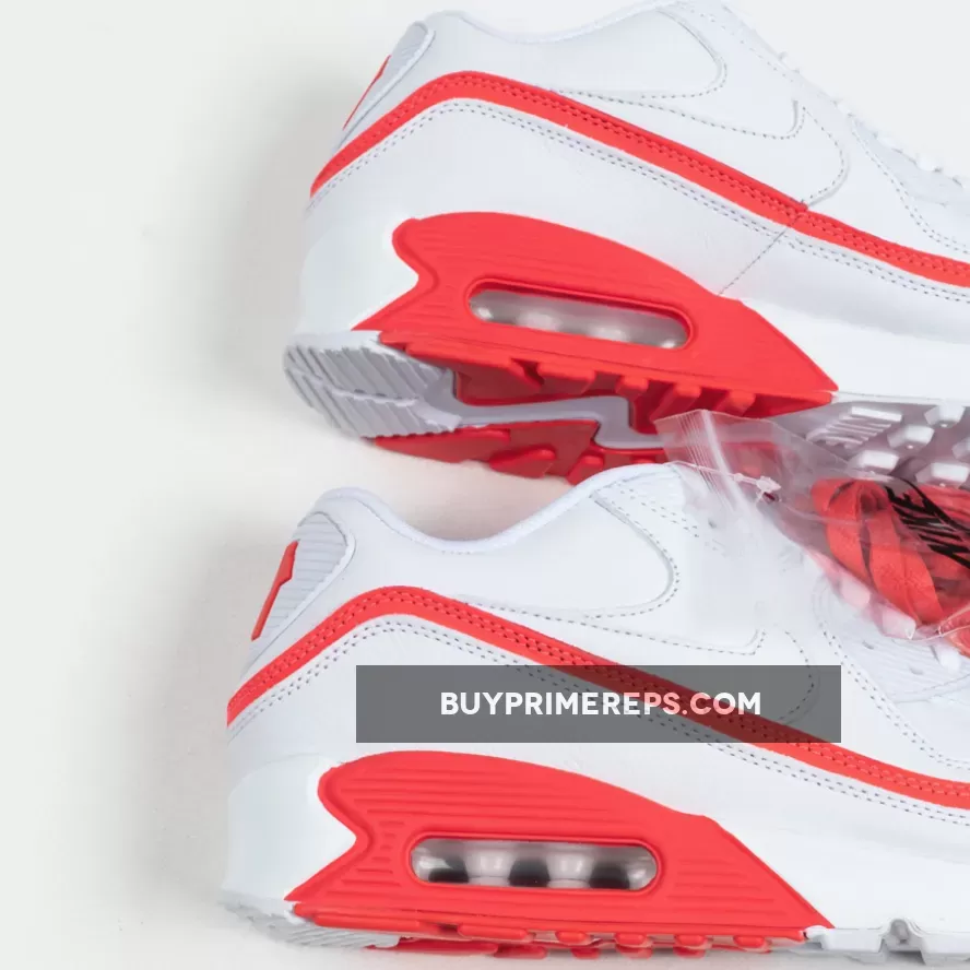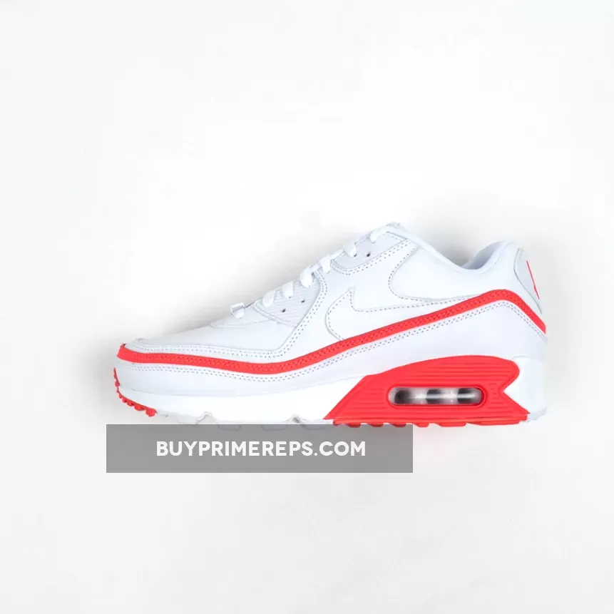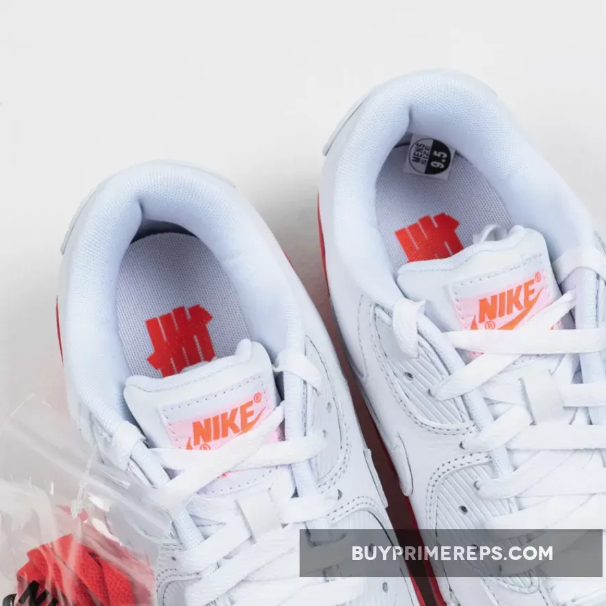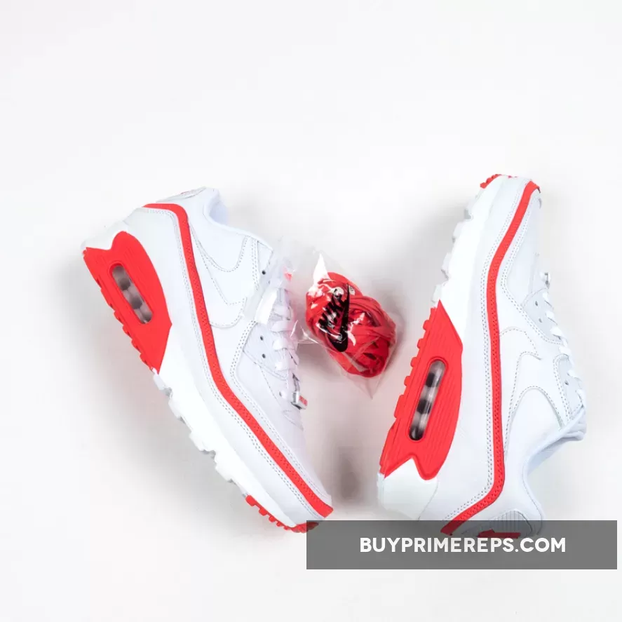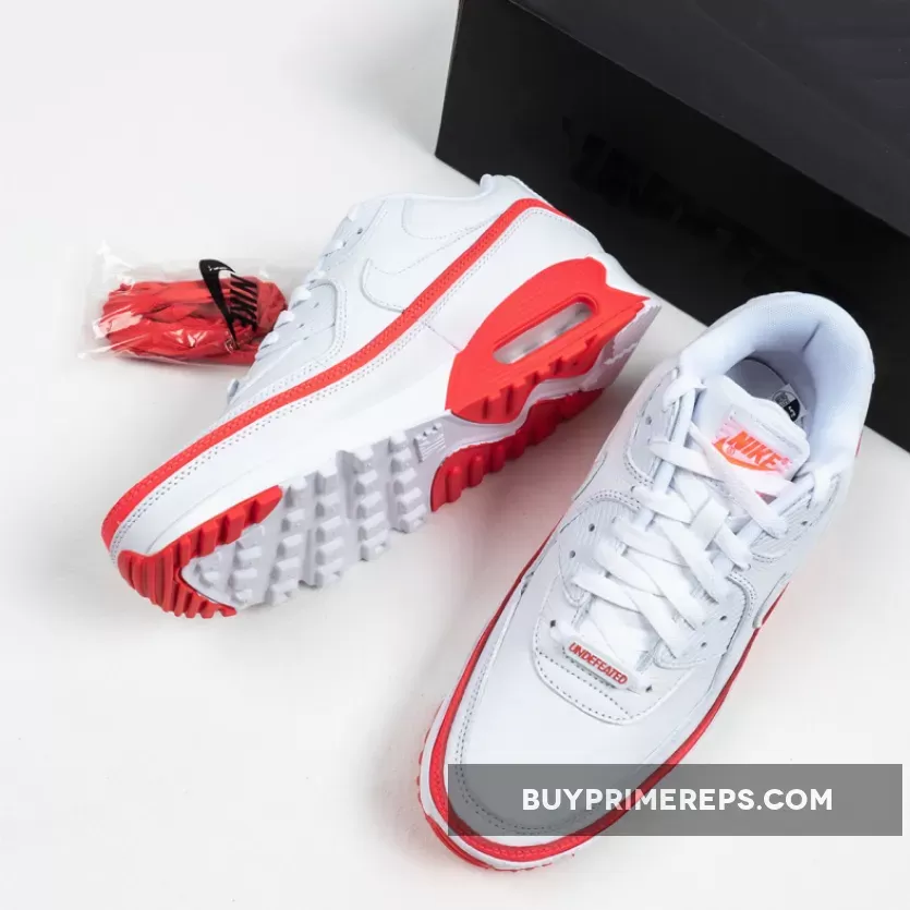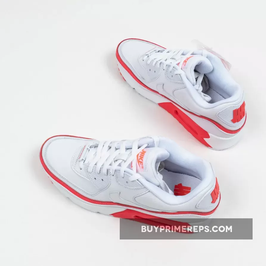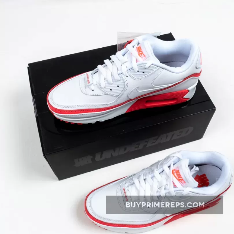 The highly anticipated UNDEFEATED x Nike Air Max 90 White Red collaboration has finally arrived, and it was definitely worth the wait. First leaked back in February of this year, sneakerheads have been eagerly anticipating the release of this clean and well-made shoe. Crafted from a variety of premium materials, the upper is predominantly made of luxe tumbled leather, giving it a luxurious look and feel. Ribbed rubberized elements also make an appearance on the lacing system and heel badge, adding subtle texture to the design.