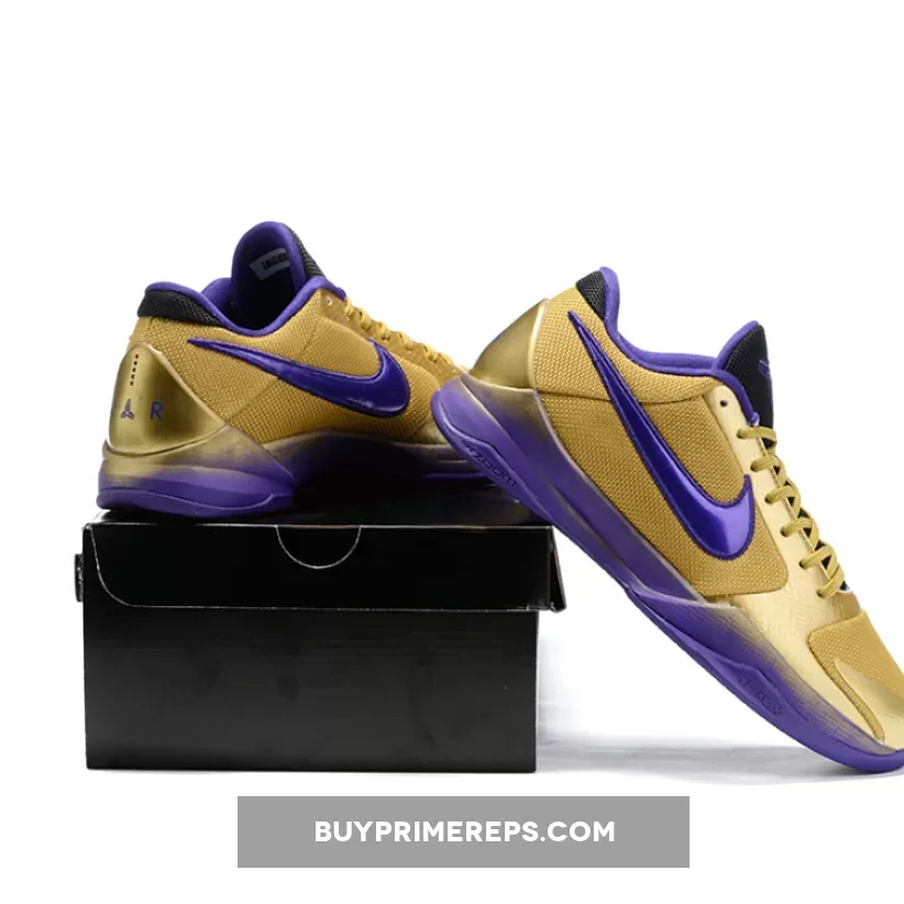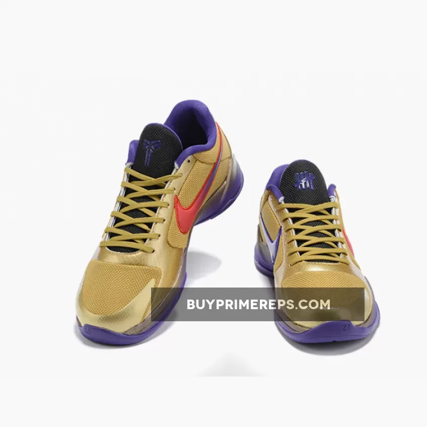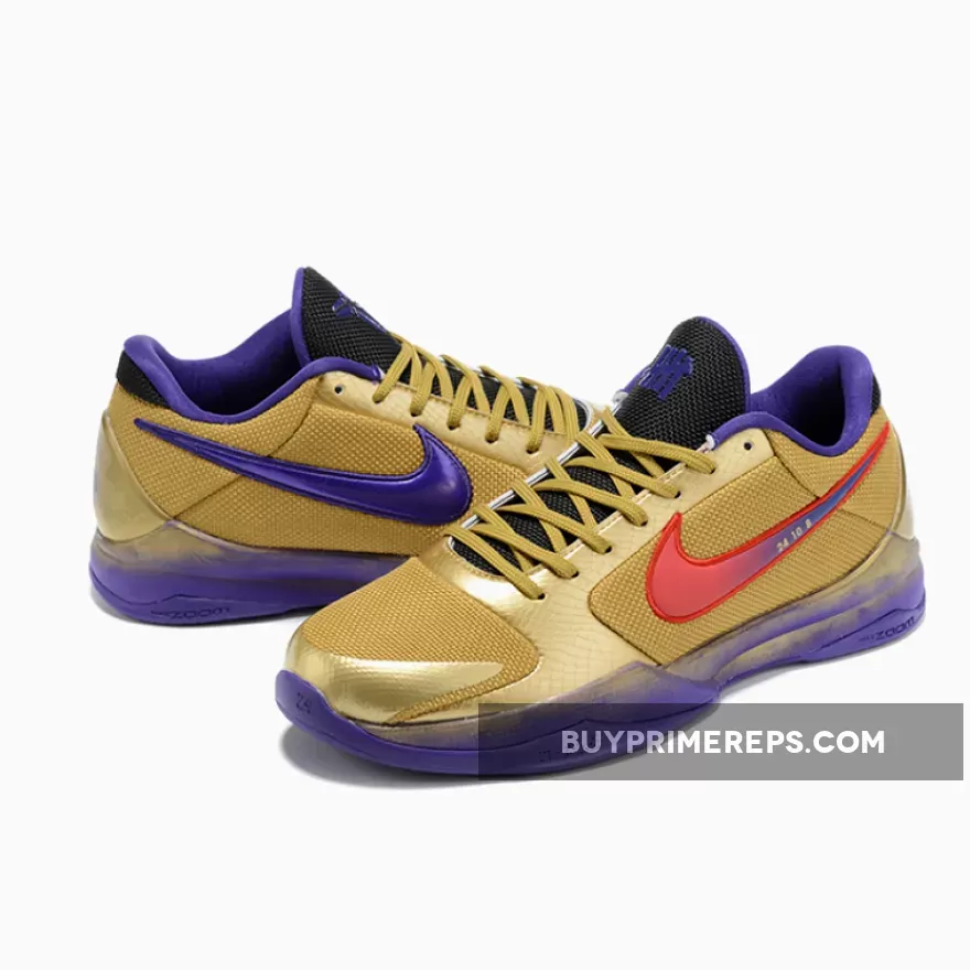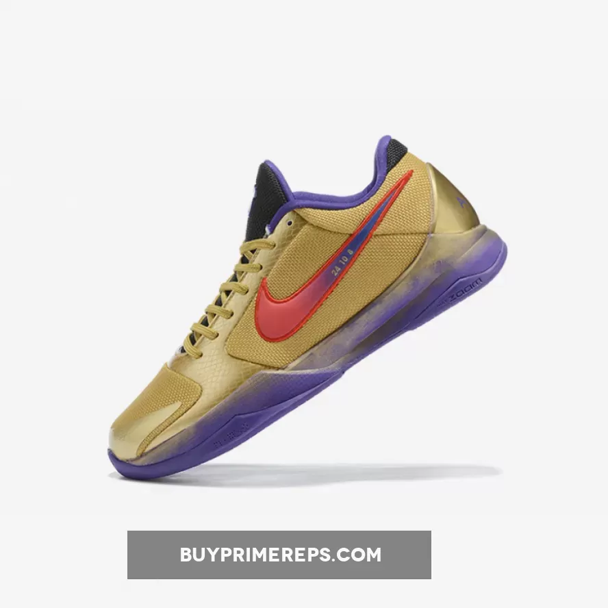 Dressed in a striking Metallic Gold and Multi-Color colorway, this Kobe 5 Protro features a unique design that captures the essence of Kobe’s championship pedigree. The upper is constructed with a combination of breathable mesh and snakeskin-textured leather overlays, creating a visually stunning and luxurious look. The metallic gold finish adds a touch of elegance and sophistication to the shoe.