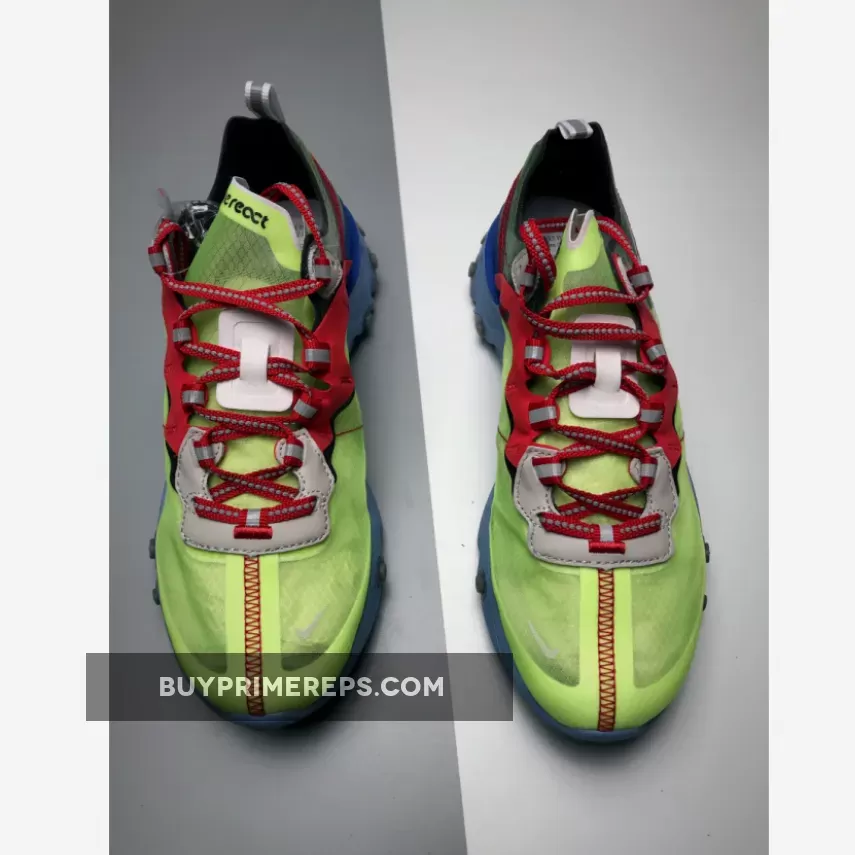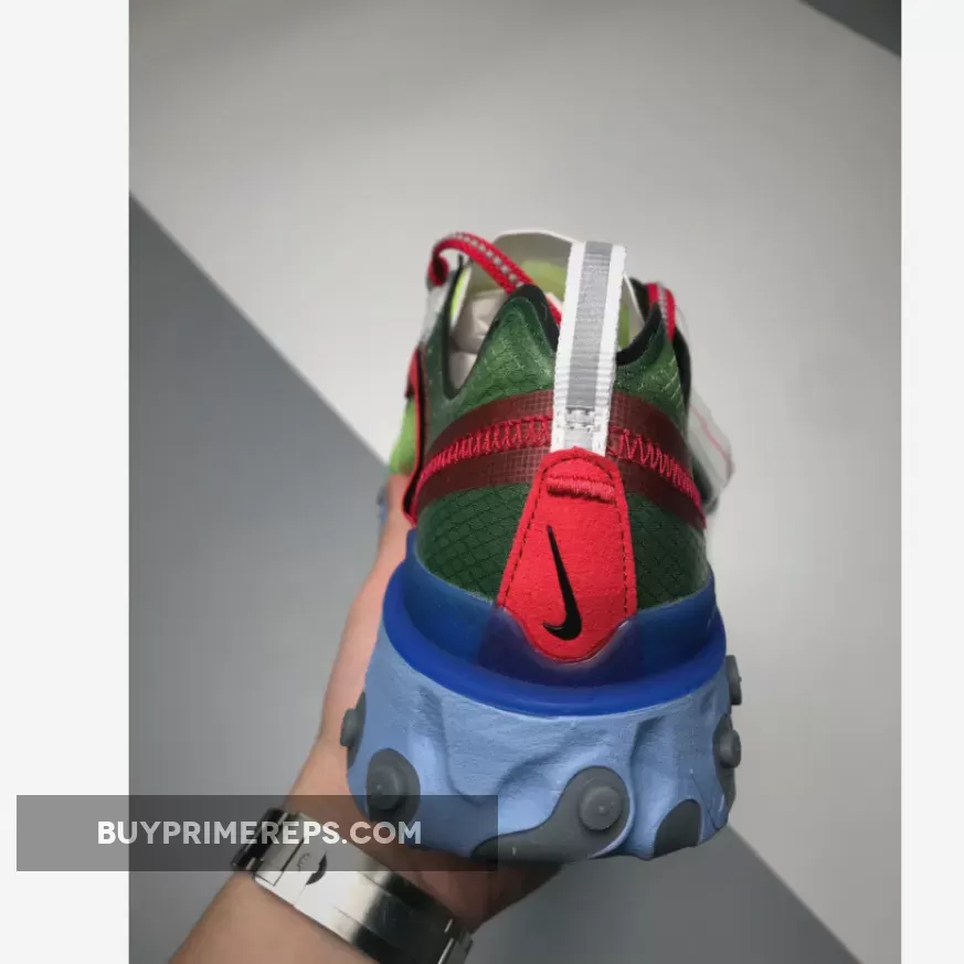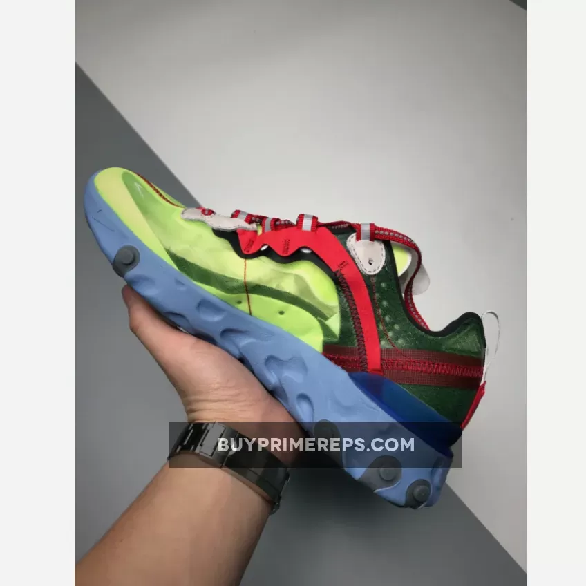 The Volt Blue colorway of this collaboration is a vibrant and striking choice. The upper features a bold yellow hue, which is complemented by accents of red and a vibrant blue midsole. The midsole of the React Element 87 is one of Nike’s most advanced in terms of technology, utilizing pressure maps to create a comfortable and responsive feel with each step.