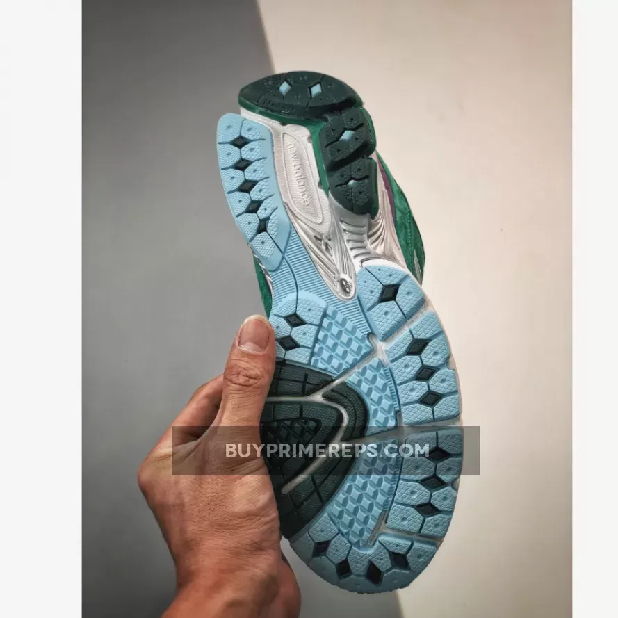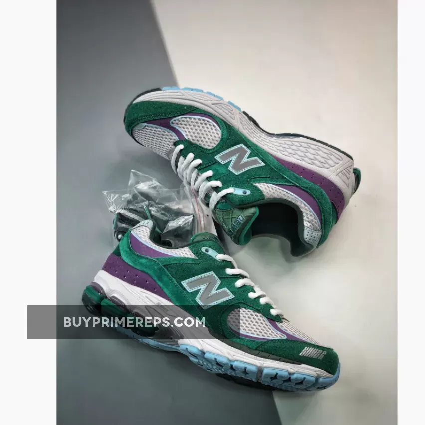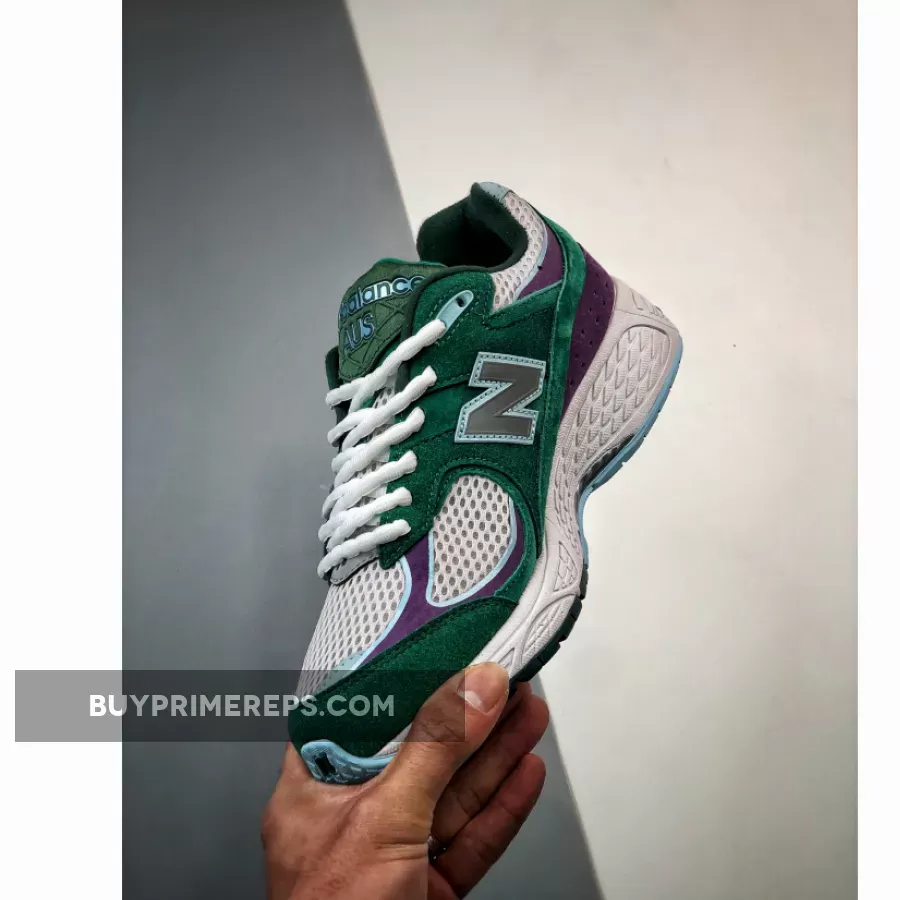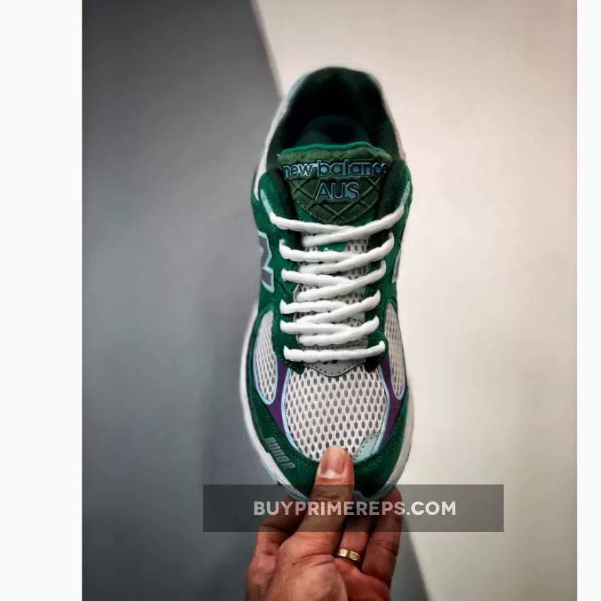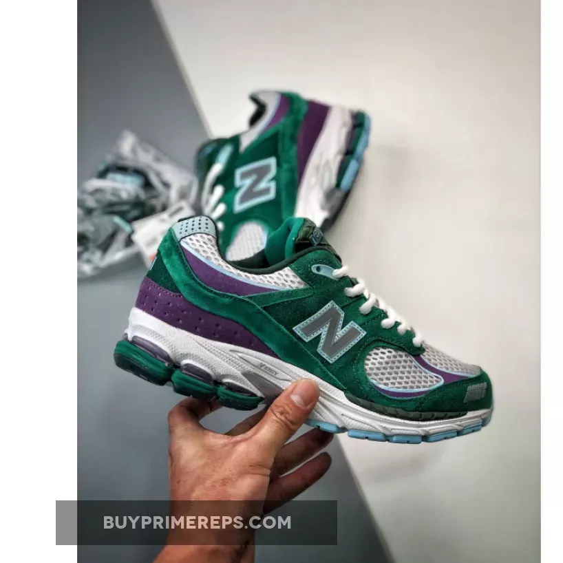 The unique green, white, and purple colorway is reminiscent of a sunny afternoon spent lounging in the great outdoors. The premium suede and athletic mesh materials blend seamlessly together, creating a visual feast that’s equal parts bold and understated.
